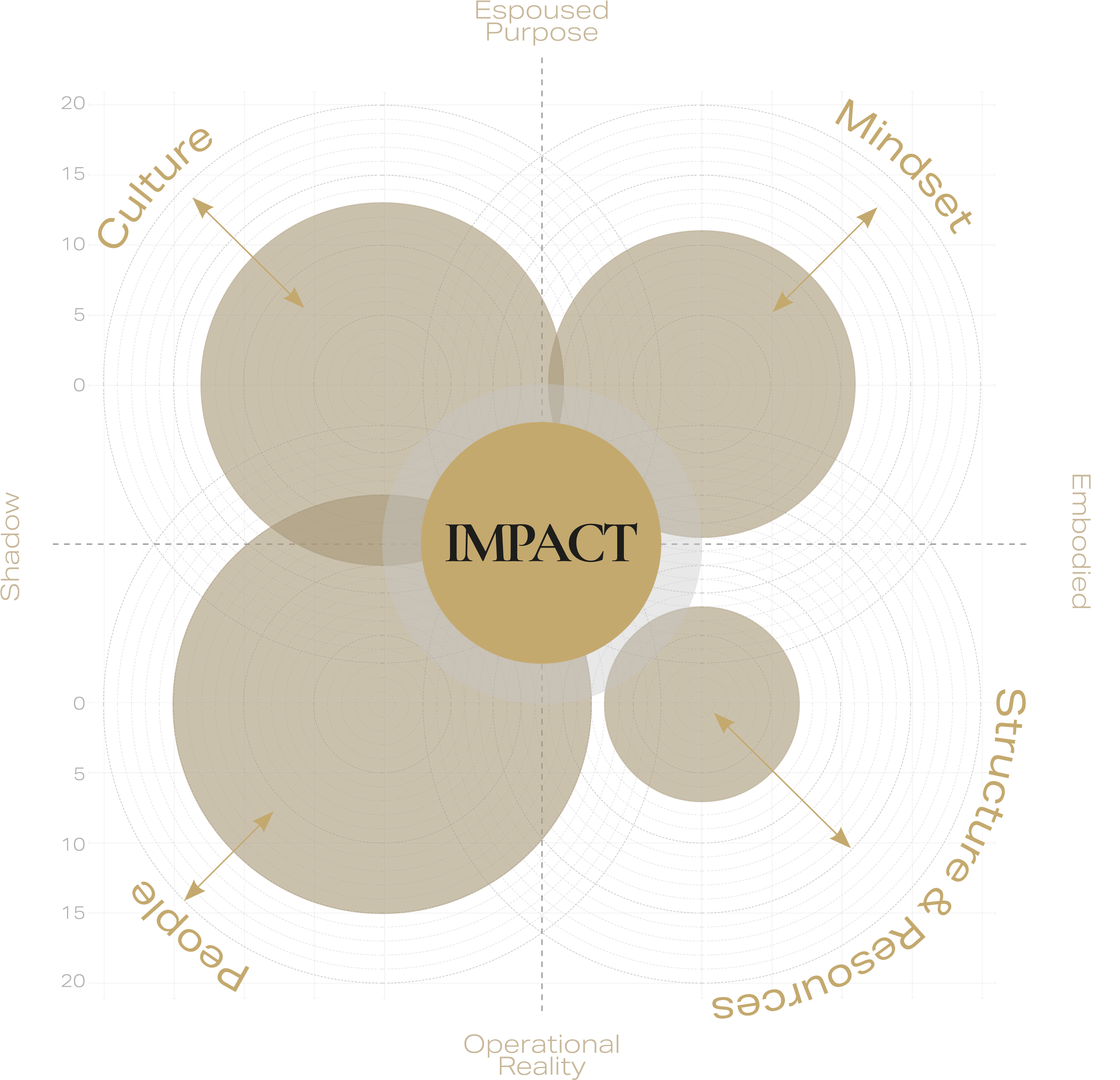 The Impact Congruence Framework is a diagnostic and developmental model that helps purpose-driven organisations assess how well their Culture, Mindset, Structure & Resourcing, and People are attuned to one another and to their broader identity and purpose.
